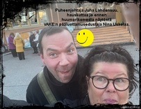 ![]() VAKE:n työsuojeluvaltuutettu Karoliina Mattila, varapääluottamusedustaja Minttu Junela, sekä yhdistyksemme puheenjohtaja Juha Lahdensuu. Naurunapit jo painettu pohjaan, ennen esitystä! | ![]() | ![]() |
